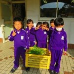 園の農園の「水菜」が食べ頃に!! 年長児さんが収穫してくれました。 収穫した「水菜」は、お昼の給食に!! 水菜のお浸しと味噌にゅう麺に入っていました。 残りは、火曜日の給食に入る予定です。 旬のお野菜を、これからも美味しく食しましょう