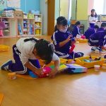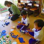週初めの月曜日 1名の欠席者がいましたが、他の園児達は元気に登園してきました。 大好きな「お砂場」と、先週お休みしていた園児さんは「作品作り」に分かれてのスタートとなりました。 お絵描きも集中し、テキパキとできていました。