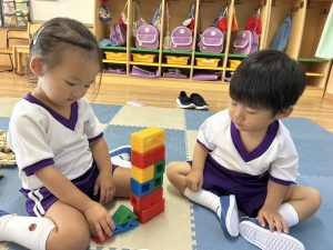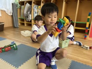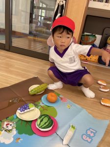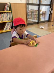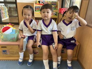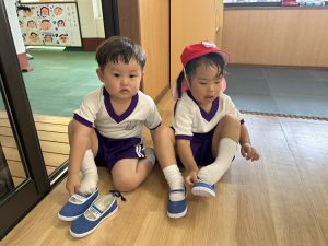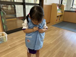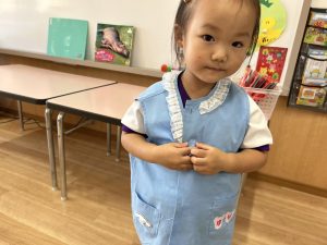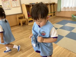 上靴を履く練習や、スモックのボタンを掛ける練習も頑張っています!