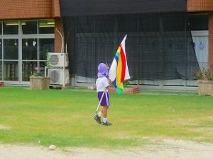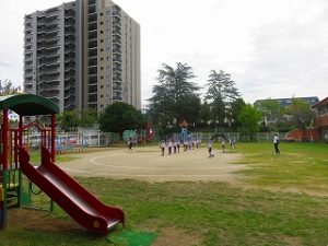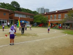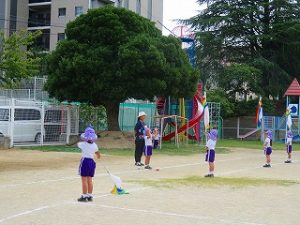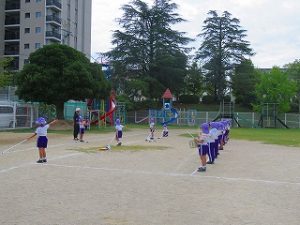 遊戯室と違い広い園庭ですので、少し戸惑い気味・・・・