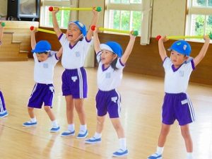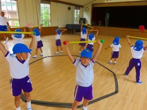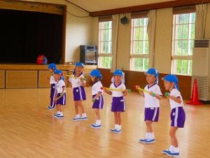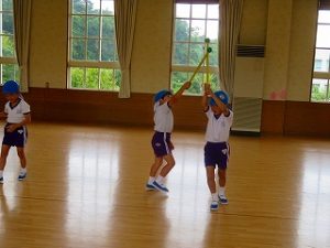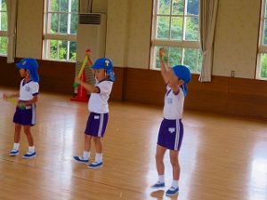 今日の体育指導は「うんどうかい」の練習