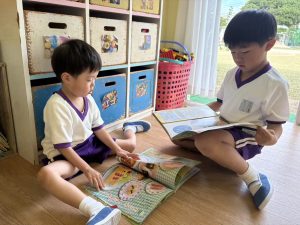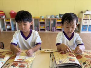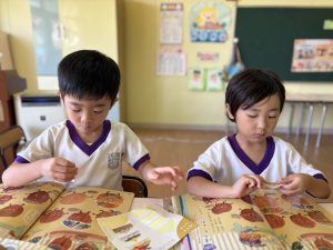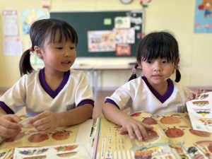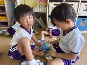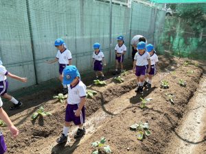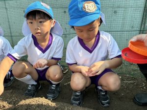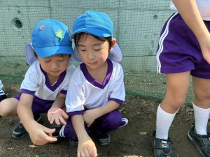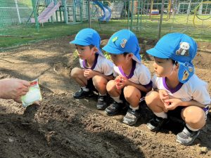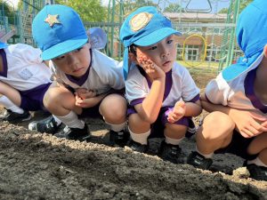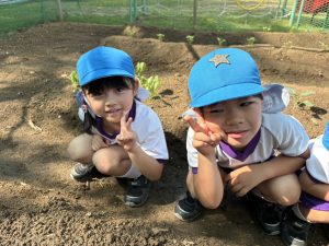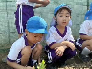 お昼からの園庭遊びも「おっきくなってるかな~」と