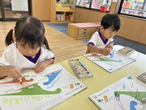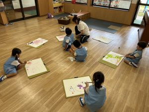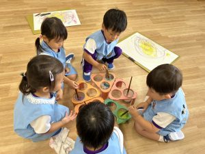 朝、絵の具を用意しているときから「はやくやりたい~!」と楽しみにしていた子どもたち!