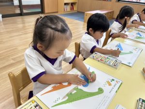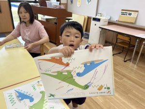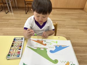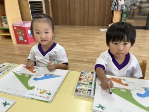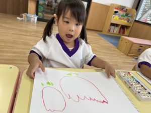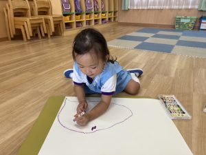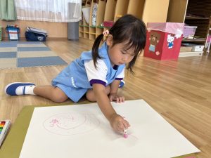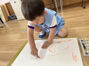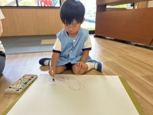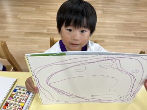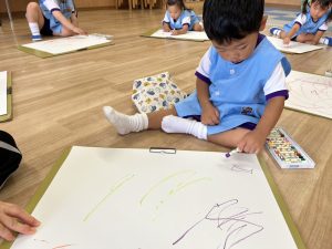 顔を描くお友だち、グルグル大胆になぐり描きするお友だち、それぞれ思い思いに描いていましたよ✨