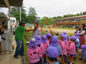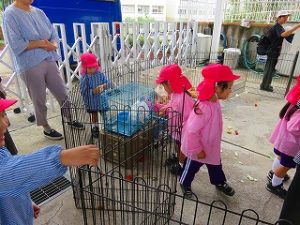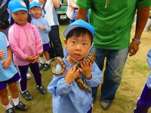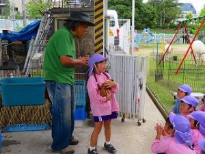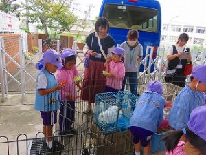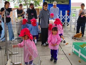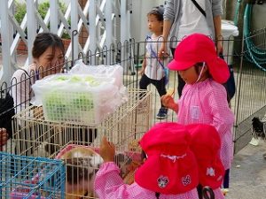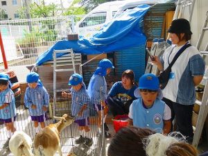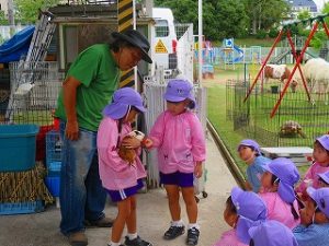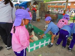 今日は色々な動物たちが幼稚園に来てくれました。沢山触ってへっちゃらなお友達、恐々と遠くから見守るお友達、エサを頑張ってあげるお友達、様々な様子が見れました。こんなに近くで動物たちと触れ合える機会もあまりなく、子ども達にとって素敵な経験になった事と思います(^^)2025.10.15
