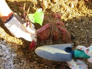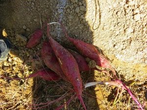 2週間待ったかいがあり、数は多くはないですが、美味しそうなさつまいもが出てきました。