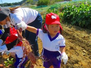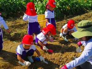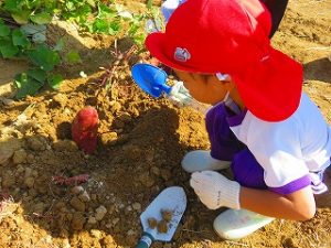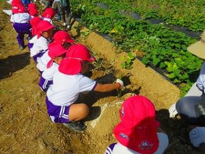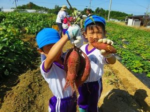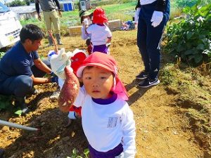 予定していた日は、まだまだ小さくて収穫できないとの事だったので、2週間遅れのさつまいも掘りとなりました。