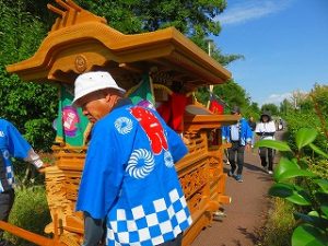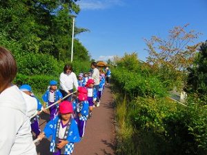 「そーりゃ!そーりゃ!!」の元気なかけ声と共に、栂・美木多駅方面に向かいました。