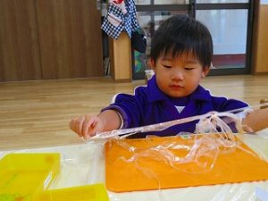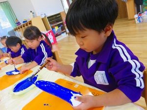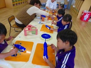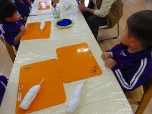 今日のばらぐみさんは「絵画作品展の製作」で「ブルーインパレス」を紙粘土で作りました。