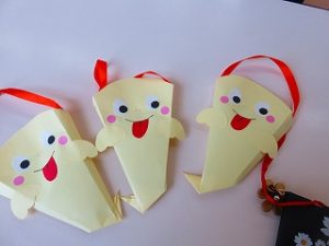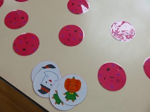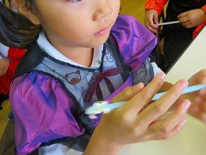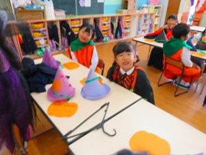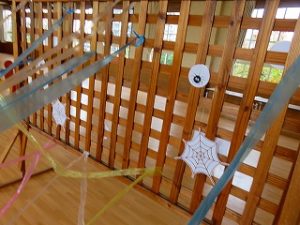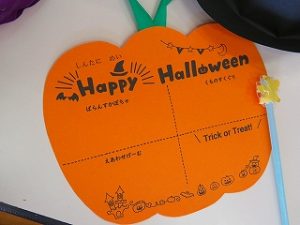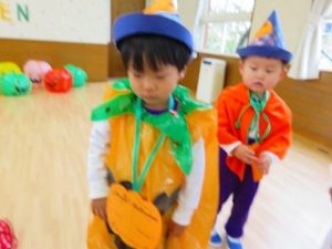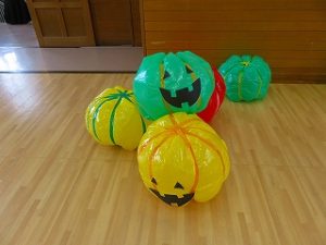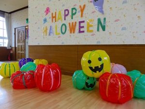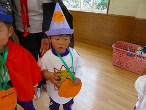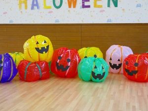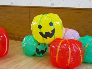 皆で「ハロウィンダンス」の後、蜘蛛の巣くぐり・絵合わせ・かぼちゃタワー…などのゲームをクリアーしたら「お土産」をゲット!!