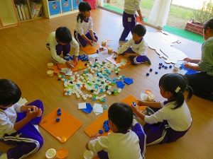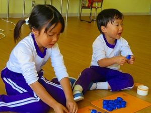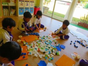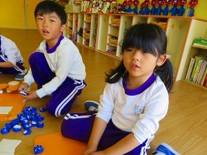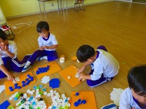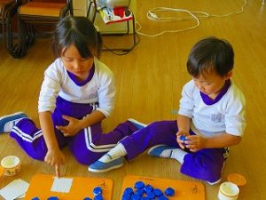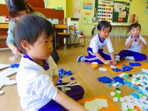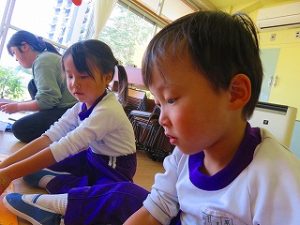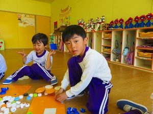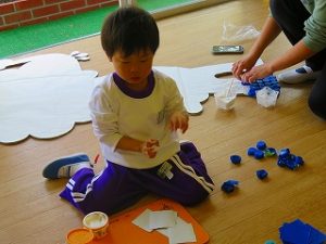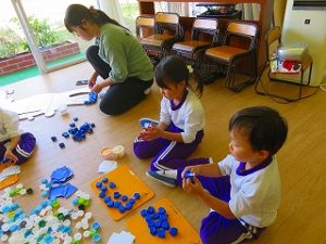 すみれぐみさんも絵画作品展の「みゃくみゃく」作り