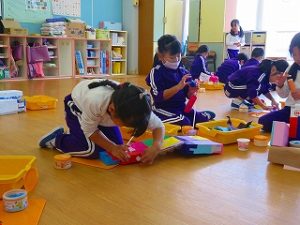 思い思いの作品と、ふじぐみカラーの「みゃくみゃく」作り!!