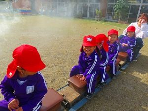20日の「幼稚園のお誕生会」に向けて、ミニSLの試運転
