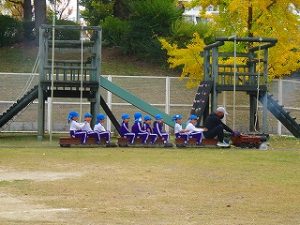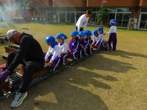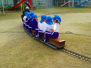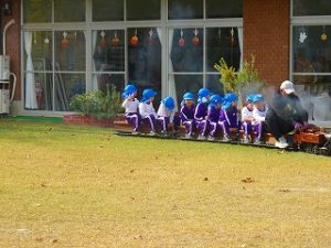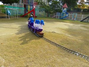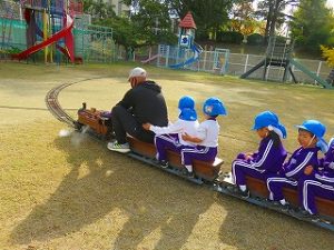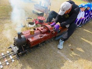 20日(木)の、原山台幼稚園のお誕生会に向けて、ミニSLの試運転を行いました。