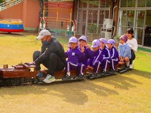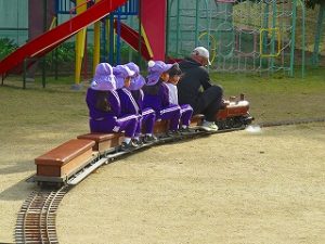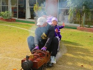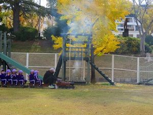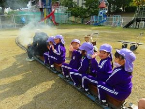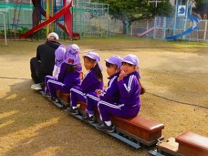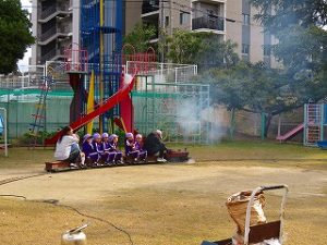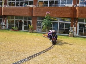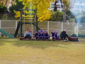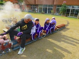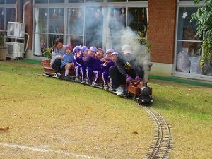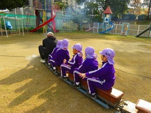20日(木)の、原山台幼稚園のお誕生会に向けて、ミニSLの試運転を行いました。