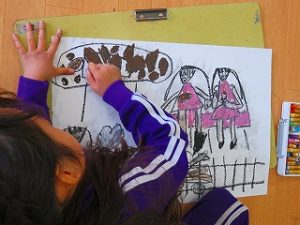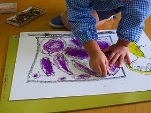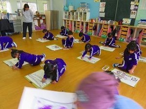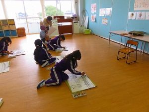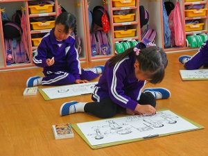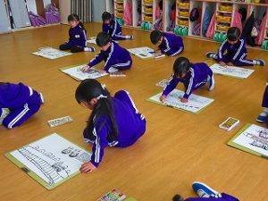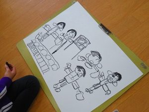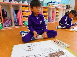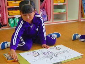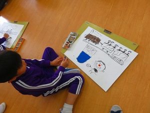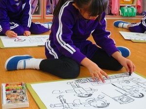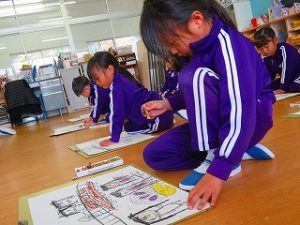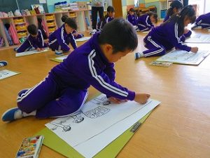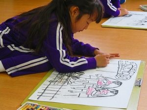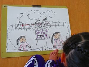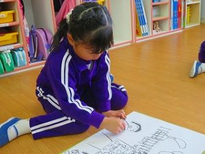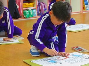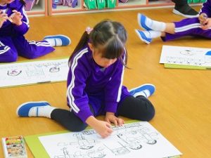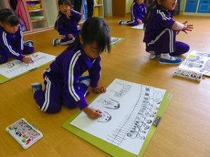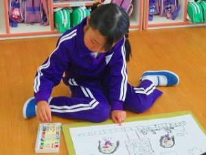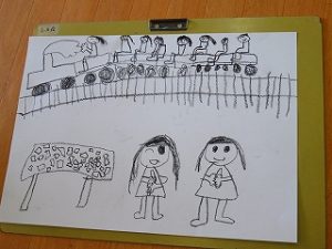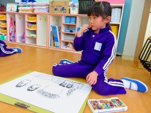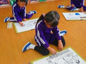 煙が出ている所や、石炭・乗っているところなど、思い思いに描いていました。