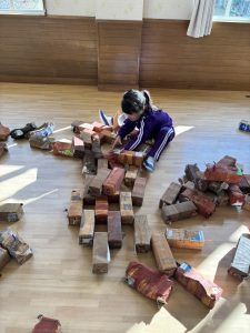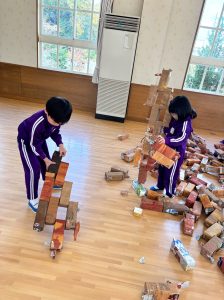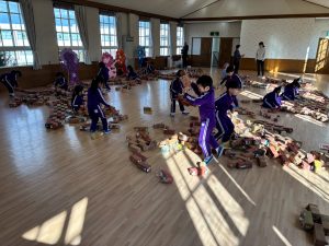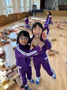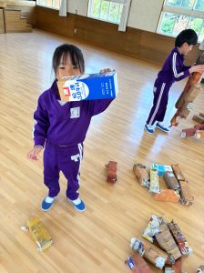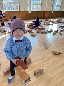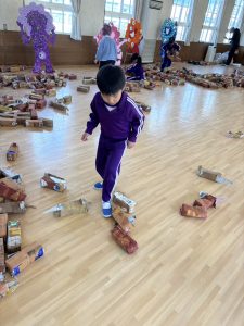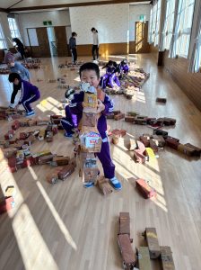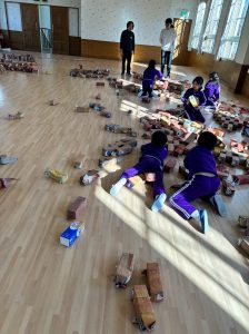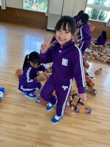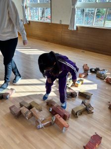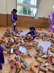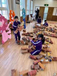 絵画作品展で作った大屋根リングをみんなでお片付けをしました。片付ける前は「もったいない~!!」と言っていた子どもたちでしたが、解体が始まると、勢いよくあっという間に片付きました😆