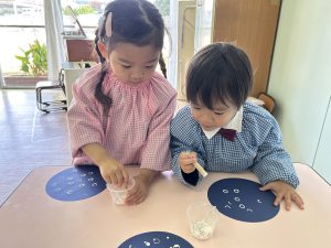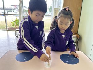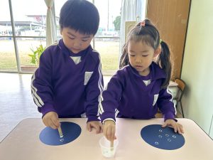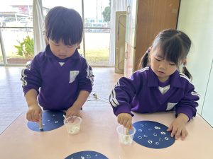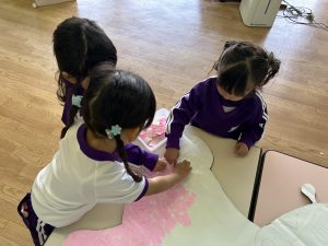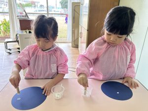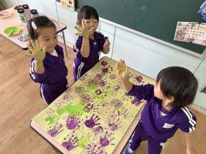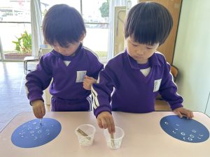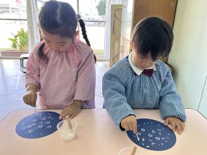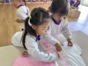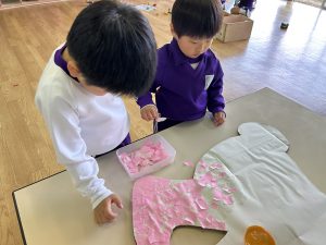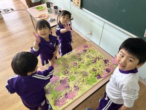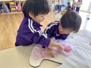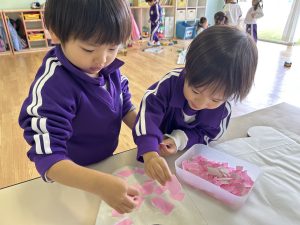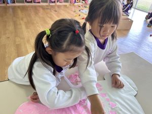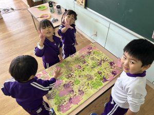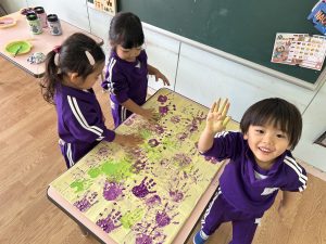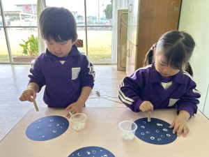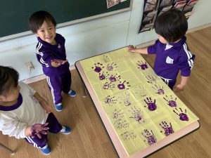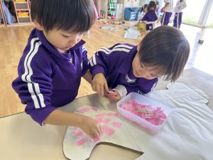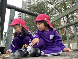 葉っぱを集めて秋らしい遊びを楽しんでいました🍁