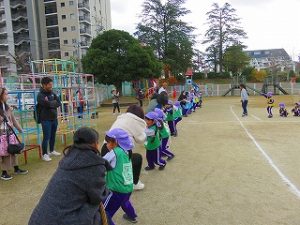 色々なところで、成長を見せてくれた「ふじぐみさん」の姿に胸が熱くなり、感動を覚えた体育参加になりました。