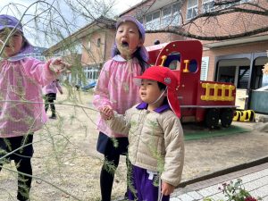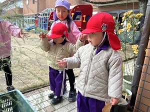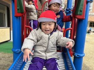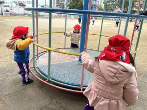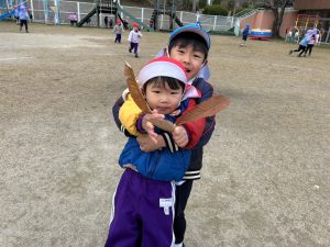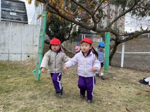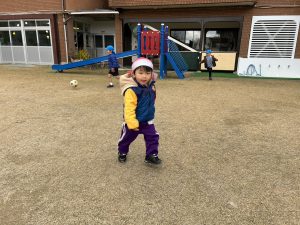 今日はとっても寒かったですが、寒さに負けず園庭であそびました😆