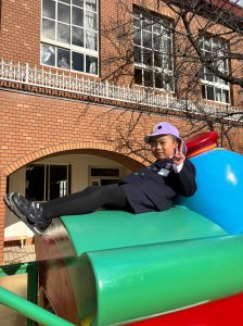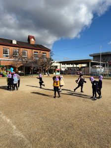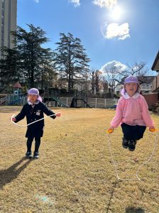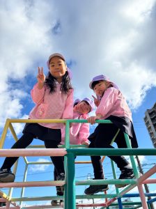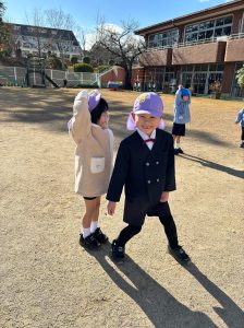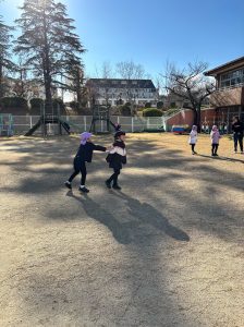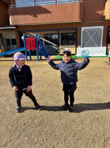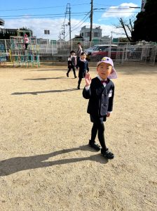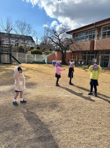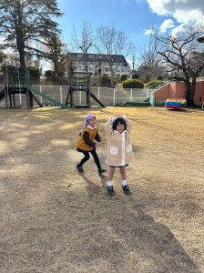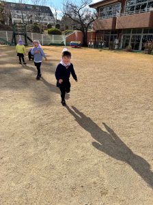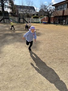 幼稚園に元気な声が戻ってきました!!日中は暖かく、戸外でたくさん遊びました🎶鬼ごっこでたくさん走り回っていたふじぐみさんです😆