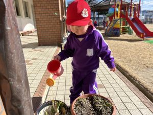「おはなにみずやりしたい!」と言って水やりをしてくれました🌼