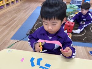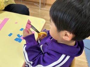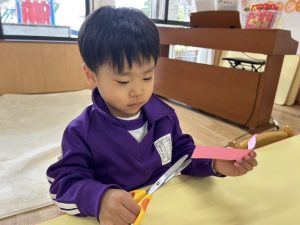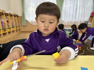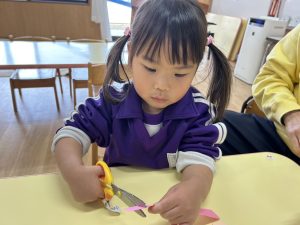 3学期はハサミを使った製作を取り入れ、少しずつ上手に使えるようになってくれればいいいなと思います😊✂