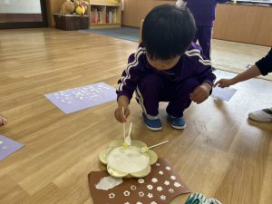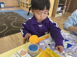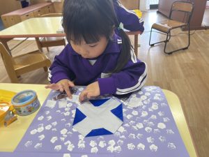 絵の具を使ってスタンプをしたり、折り紙でペンギンを折りました✨