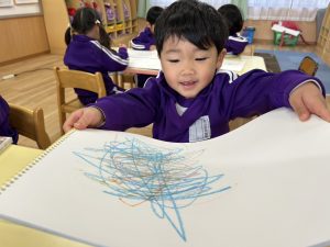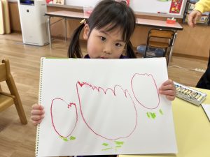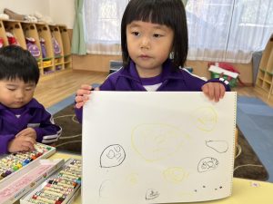 自由になんでも描いていいよ❢と伝え、好きなようにお絵描きをしました🎵