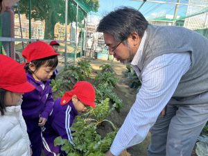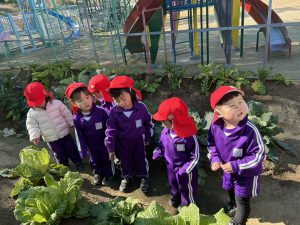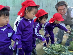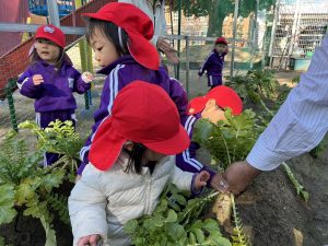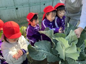 白菜や大根などたくさんの野菜に興味津々な子どもたちでした。