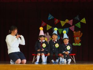 お誕生児は「お名前・年齢」と「年長児は大きくなったらなりたいこと」