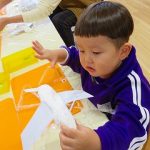 今日の絵画指導は「お米」がテーマ 田植えから、稲を収穫までを横長の画用紙に描きました。 田植え体験のある年長児ならではの「絵」が完成しそうです。 作品展に展示しますので、楽しみにしてくださいね
