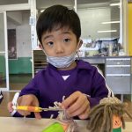 昨日、調子が悪く乗れなかったミニSL 調整をして今日乗りました 蒸気機関車特有の石炭を燃やす香りと共に「ポッポー」の汽笛を聞きながら、全園児楽しく乗りました。 楽しそうな笑顔いっぱいの、ふじぐみさんでした。   …