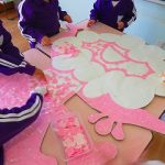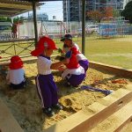 週初めの月曜日 1名の欠席者がいましたが、他の園児達は元気に登園してきました。 大好きな「お砂場」と、先週お休みしていた園児さんは「作品作り」に分かれてのスタートとなりました。 お絵描きも集中し、テキパキとできていました。