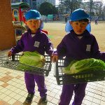 園の農園の蕪の収穫時期が来たので、種を植えたすみれぐみさんが収穫をしました。 大きいの・小さいのと様々な大きさと形ですが、子ども達は「よいしょ!よいしょ!!」と葉っぱや茎をつかんで抜いていました。 みんなの給食にして、美味しく食べましょうね …