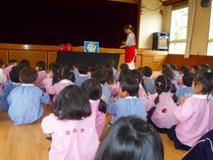 27日(金)絵本キャラバン隊が幼稚園に読み聞かせに来てくれました。