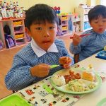 開園記念日の今日は、給食も「お祝いランチ」 子ども達の好きな物ばかりで、おかわりする園児も沢山いました。 園で採れた「栗」をトッピングしたケーキもあり、食欲モリモリの子ども達です。