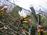 園の遊歩道側の桜が咲きました。